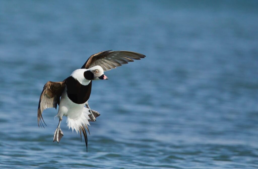 They often travel in loose, shifting rafts and low, wavy flight lines. If you see a small sea duck stringing well offshore and flashing white in the troughs, there’s a good chance you’re looking at long-tails.