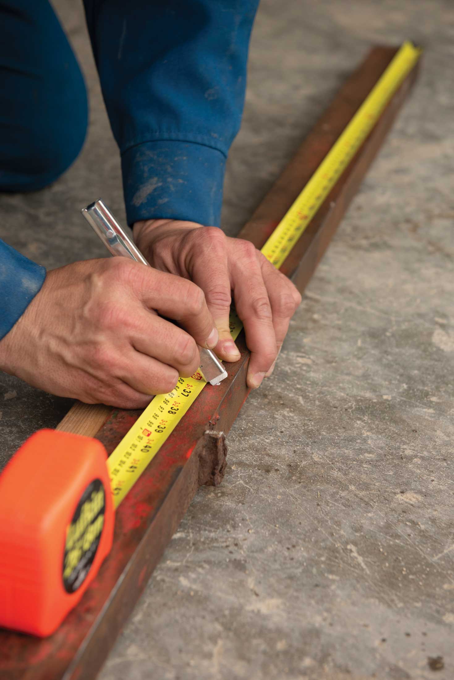 Step 2, layout: Metal parts measured and marked in preparation for cutting.