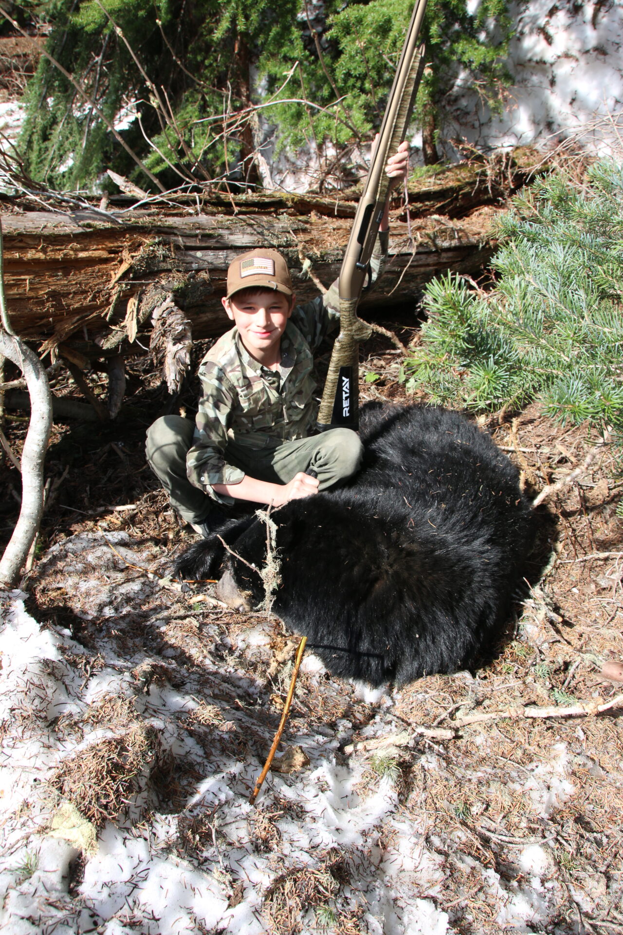 Hurdle 2, having taken numerous bears with shotgun, I have found that the effective range of buckshot is very close and usually requires a follow-up shot or two. My son was still willing to try, so off we went. After a few blown stalks and a miss or two, we managed to close the distance on a cooperative bear. His first shot rolled the bear and it got back up, it managed to travel a few yards and then piled up. I had him put another shot into it just to be sure, but it probably wasn’t needed. Our party ended up taking one more bear with the shotgun that trip. We managed to turn our luck around by trying a different form of hunting. All the times when I had allowed my son to try a new gun or just finish off the last few rounds really have paid off. I have never thought that just going out plinking or “burning up” old, mismatched ammunition was a waste of time and money, it builds experience and confidence, whether on the range or in the field.